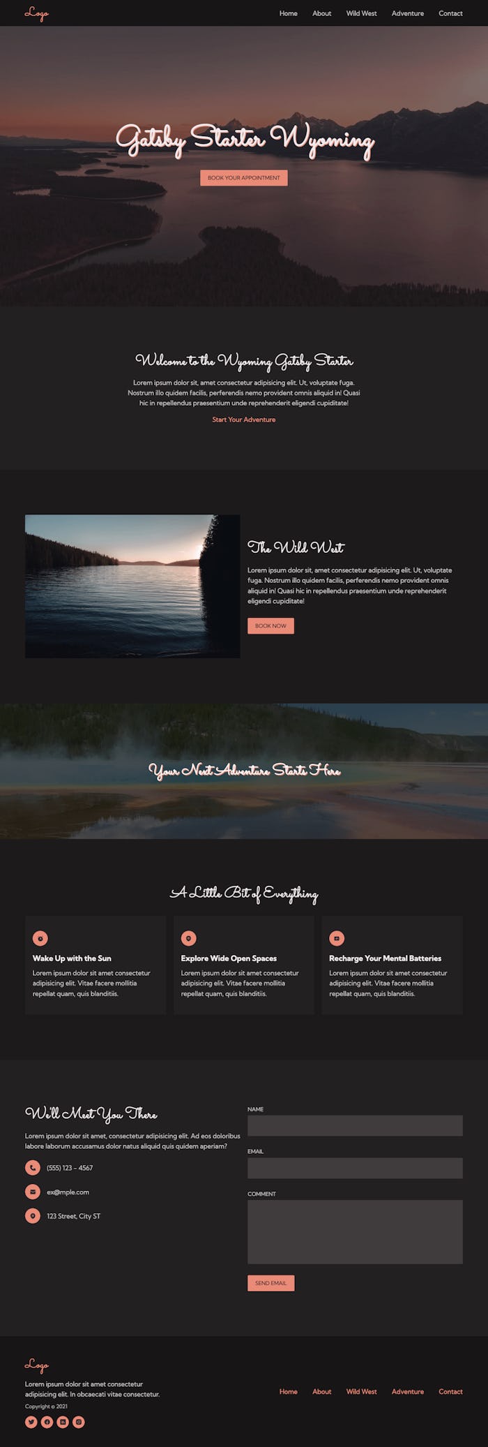 Gatsby Starter Wyoming is a mobile responsive, open source template built with both small business and developer needs in mind.